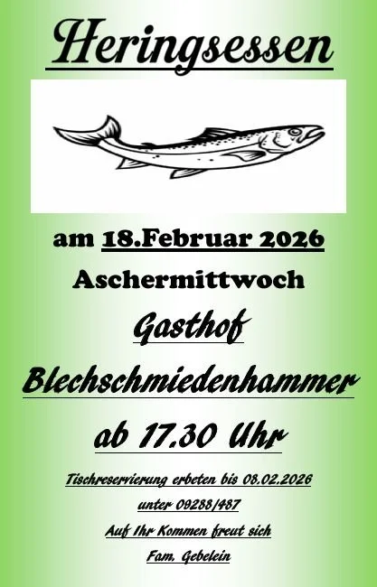 Aschermittwoch 18.02. Heringsessen Anmeldung bis 08.02.